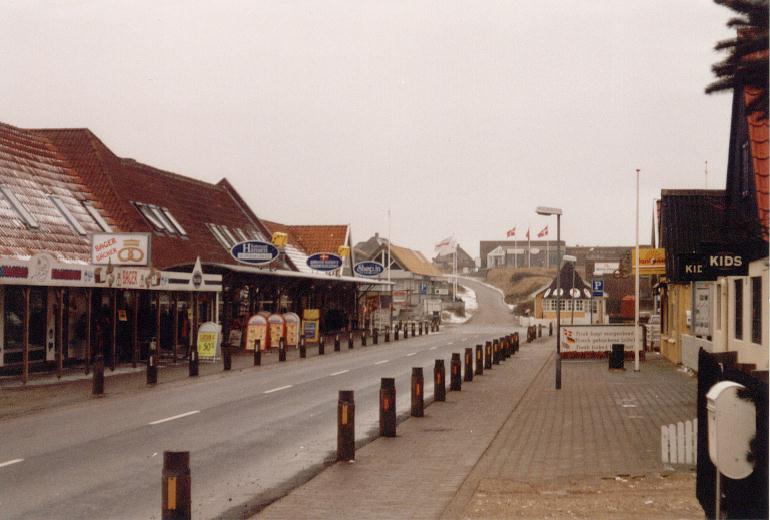 Blick auf die Geschäftszeile mit Kobmann Hansen in Richtung Strandhotel