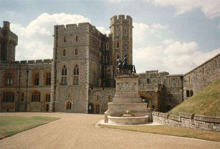 Windsor: Schloss Windsor Castle Viereckhof mit Statue von König Karl II. von 1679