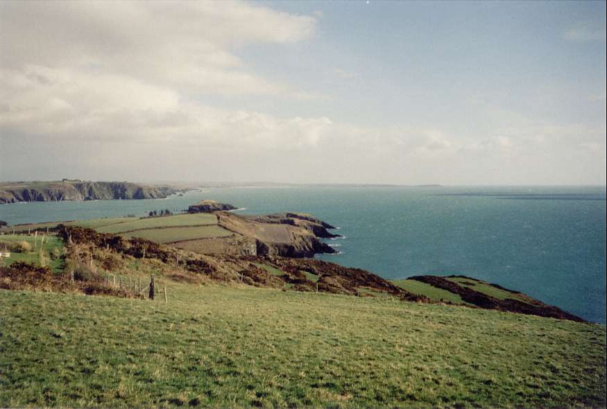 Ein rückwärtiger Blick auf Steilküste mit einer kleinen Bucht