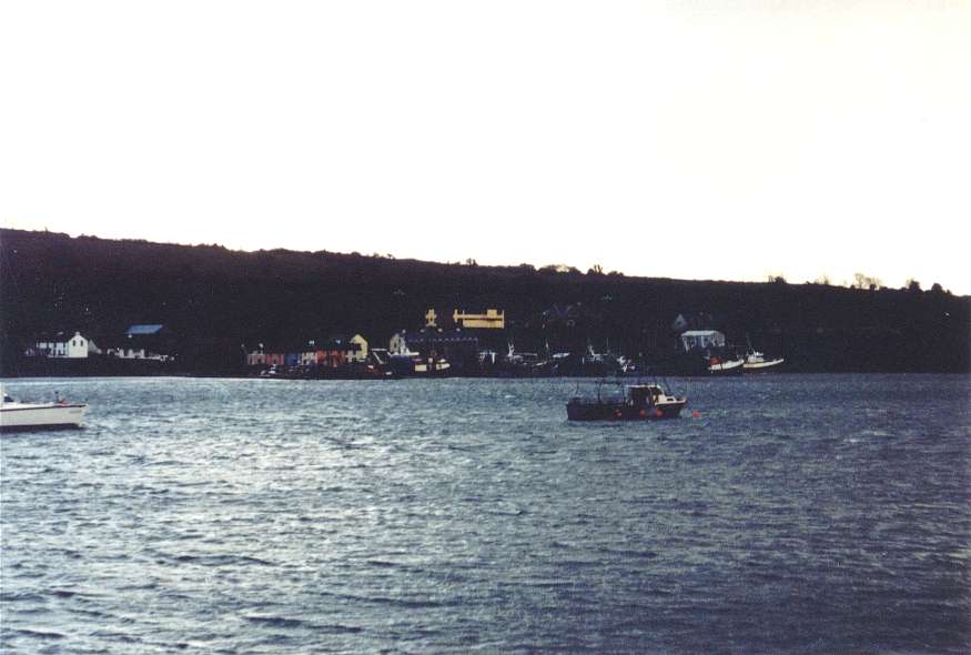 Blick auf Squince Harbour Strand mit Hausherrenhund